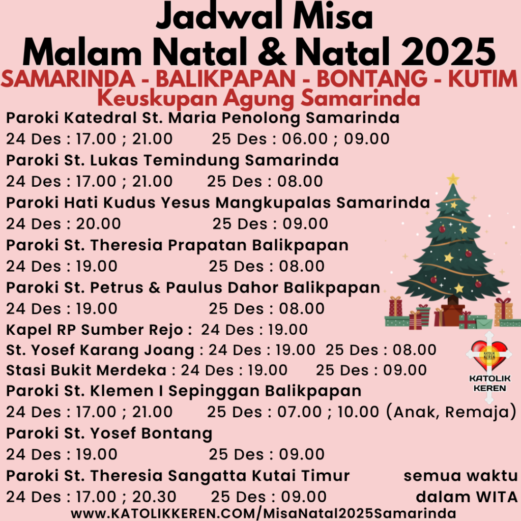 24 Des : 17.00 ; 21.00 25 Des : 06.00 ; 09.00 - Paroki St. Lukas Temindung Samarinda