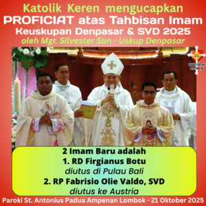 Keuskupan Denpasar mengadakan Tahbisan Imam Keuskupan Denpasar & SVD 2025 pada Selasa,21 Oktober 2025. Misa Tahbisan tersebut diselenggarakan di Gereja Paroki St. Antonius Padua Ampenan Lombok. Mgr. Silvester San (Uskup Keuskupan Denpasar) memimpin & menahbiskan Imam baru. Banyak umat menghadiri langsung Misa Tahbisan Imam Denpasar tersebut.