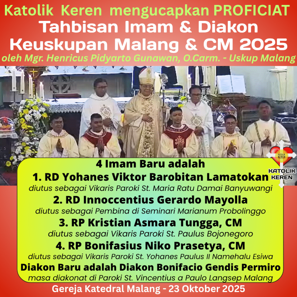 Katolik Keren mengucapkan PROFICIAT atas Tahbisan 4 Imam & 1 Diakon baru. Kami mendoakan semoga Imam & Diakon baru tetap setia dalam panggilan & semangat dalam perutusan.
